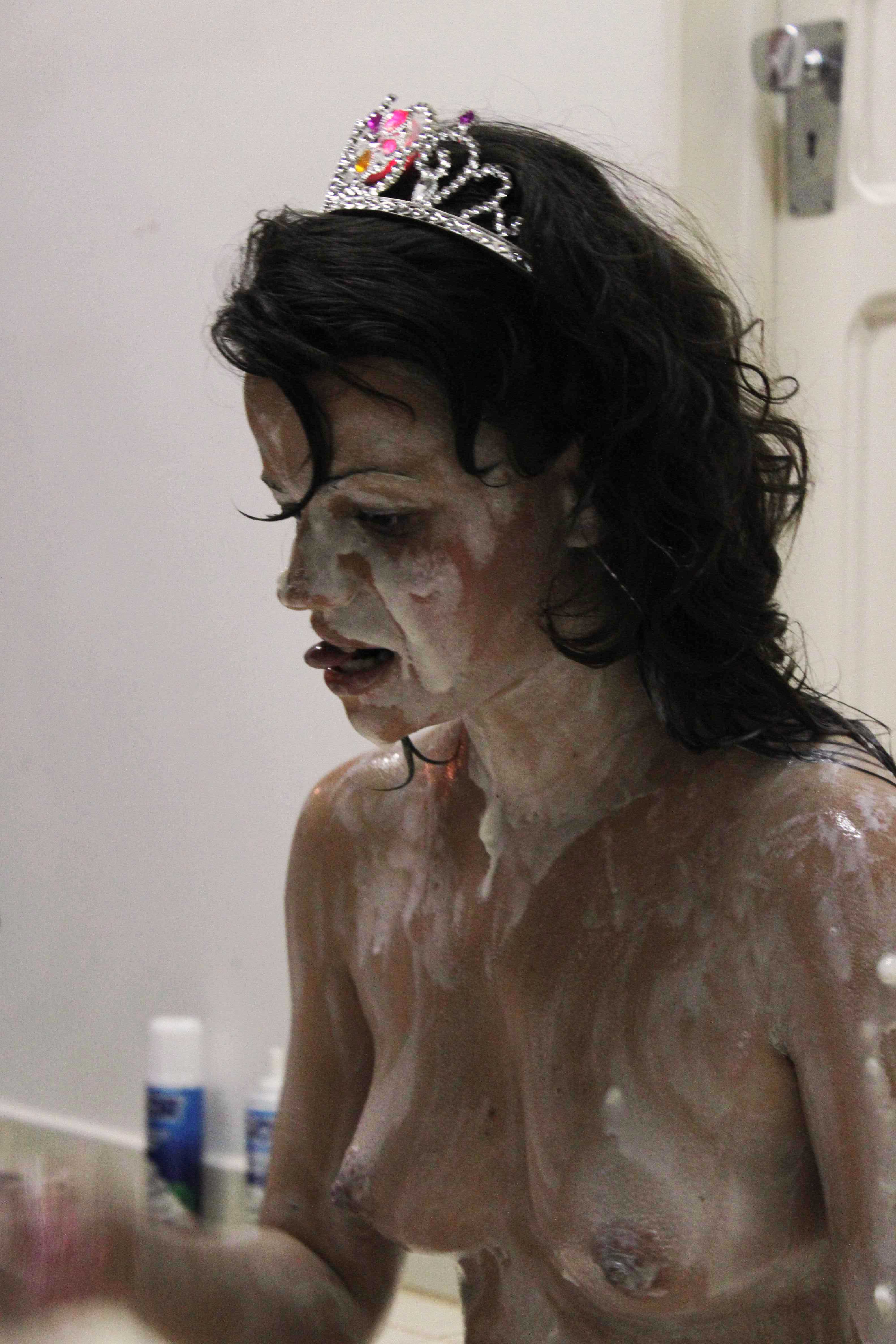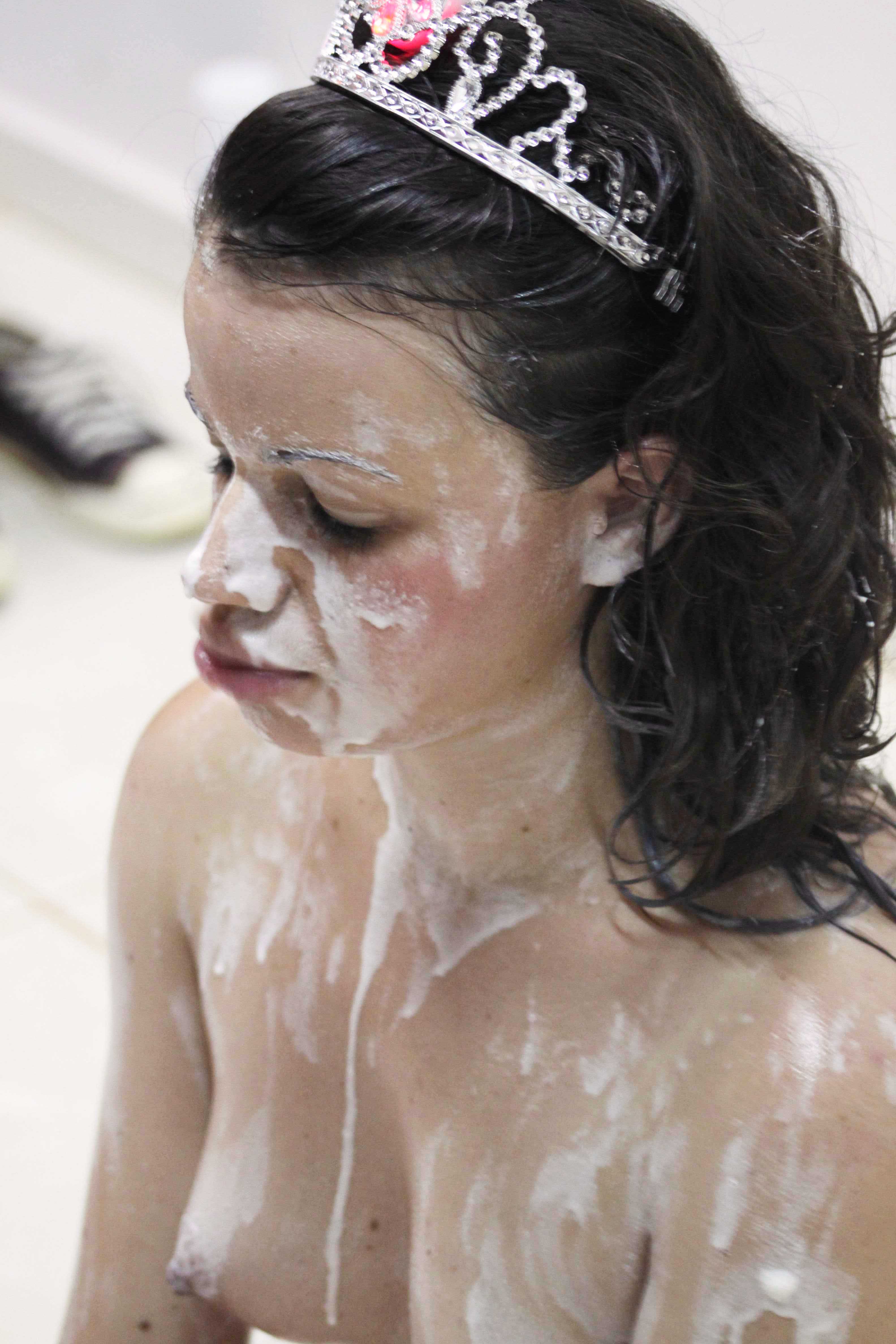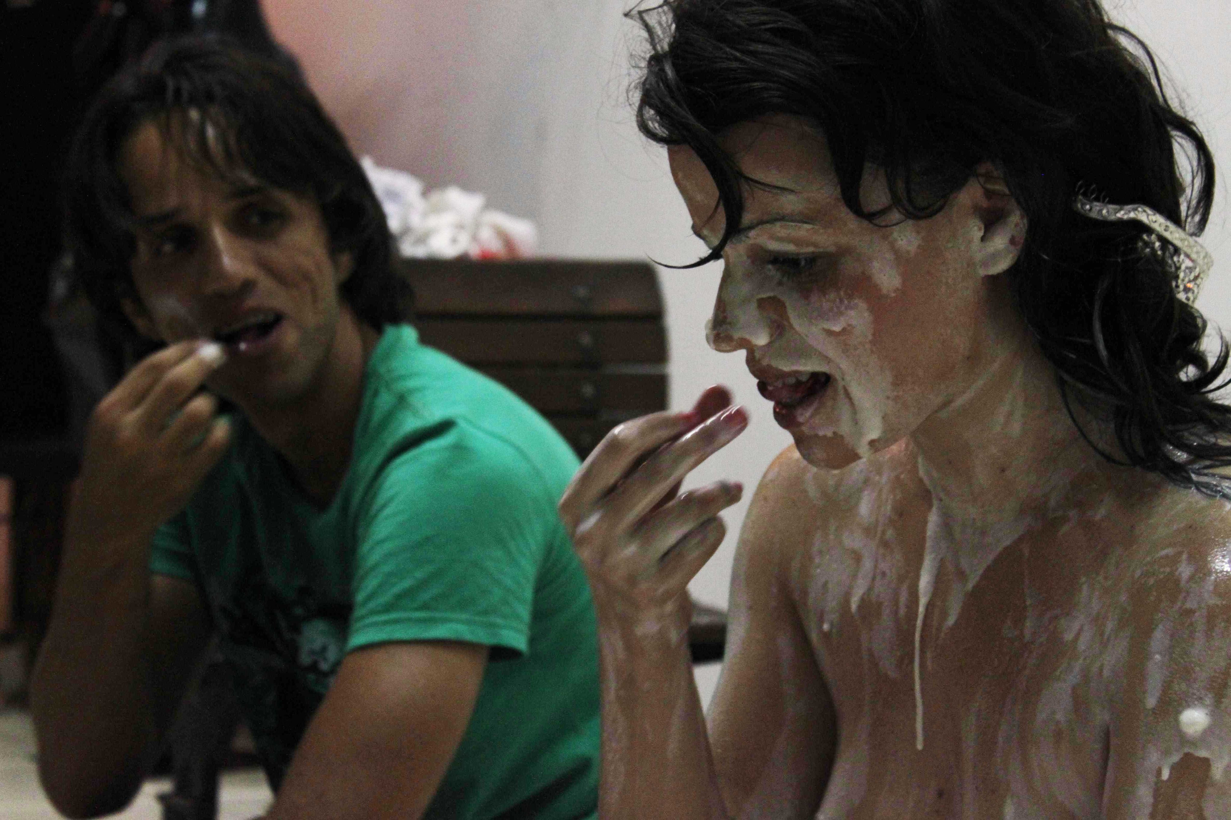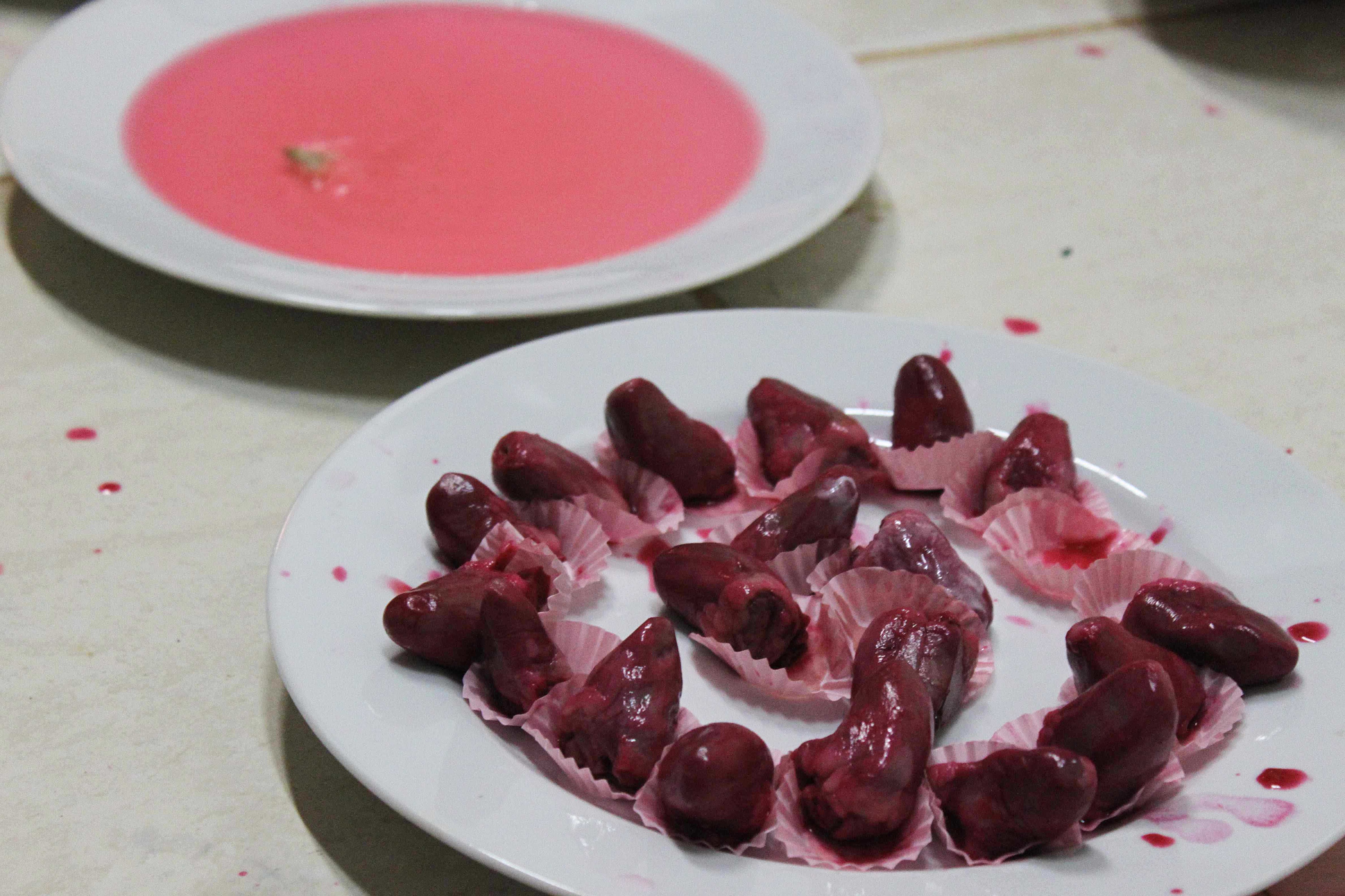 Quando a música começar a tocar, está dada a largada. Para satisfazer seus desejos, será permitido que você (vocês) dê (dêem) uma lambidinha no chantilly que está sobre o meu corpo. Mas isso não acontece sem conseqüências: para cada lambidinha que levar, eu comerei um desses corações crus de galinha que estão aqui à minha frente, e progressivamente: para a primeira lambida, um coração comido. Para a segunda, dois. Para a terceira, três - e assim sucessivamente. Peço a gentileza de que apenas uma pessoa por vez venha até mim, de modo que eu possa comer os corações referentes a essa lambida antes de levar a próxima. O jogo acaba quando acabar a música, que está num looping de 20 minutos.